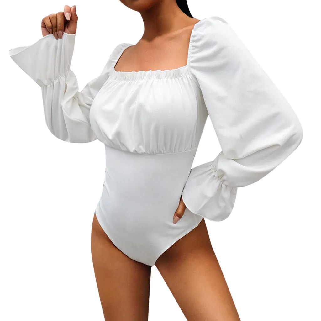 2. Kwadratowy dekolt, długi rękaw, jednolity kolor, tkanina ma trochę rozciągliwości