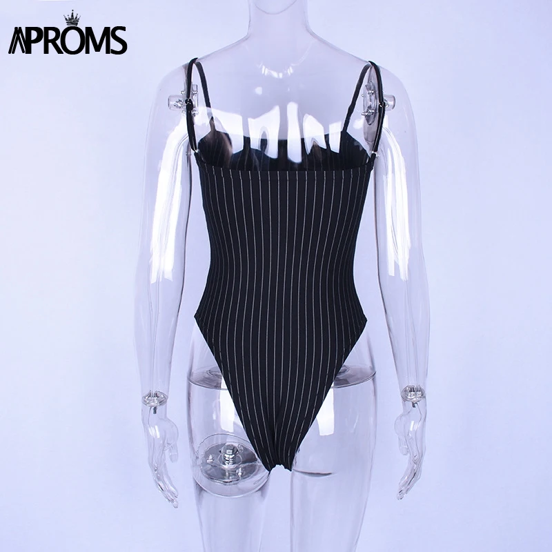 Aproms Sexy głęboki dekolt na plecach paski Spaghetti Bodycon Body 2020 moda damska nadruk w paski głęboki dekolt Sim Fit Body n