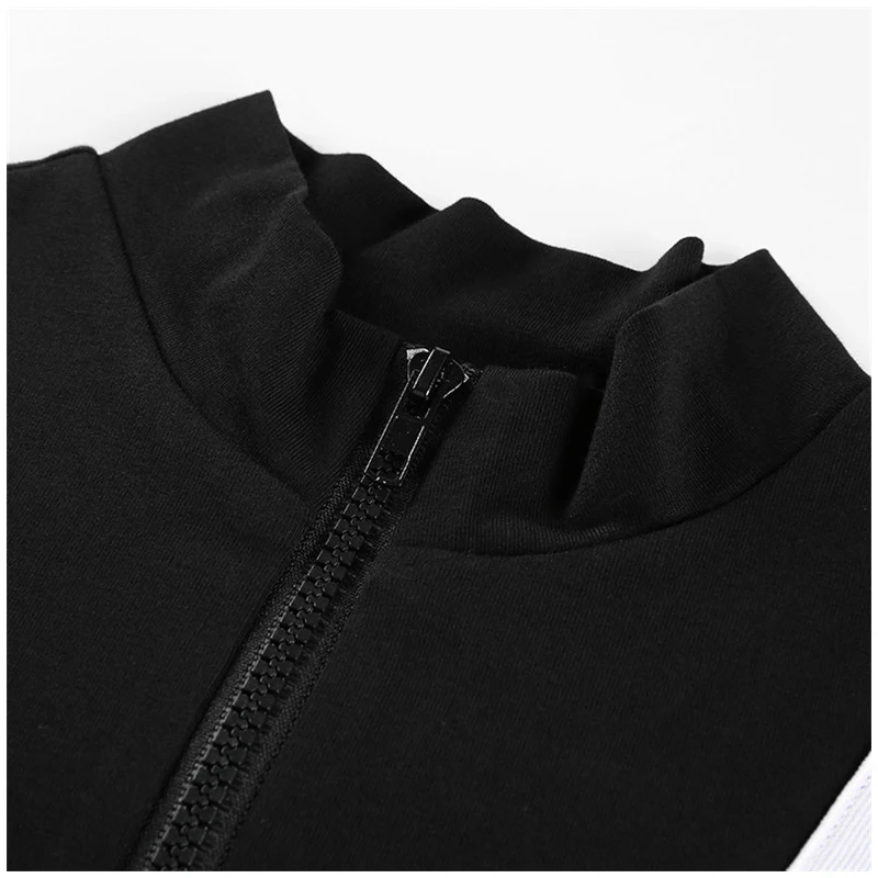 Rapwriter Sexy Slim golf środkowy zamek w paski Patchwork obcisłe body kobiety 2019 z długim rękawem Sheer otwórz krocza body