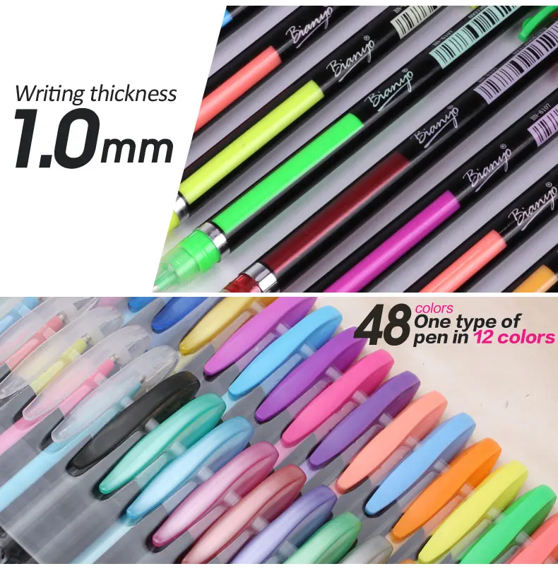 48 sztuk zestaw długopisów żelowych wkłady metaliczne pastelowe Neon Glitter szkic kolorowy długopis do kolorowania szkoła papiernicze Marker na prezenty dla dzieci