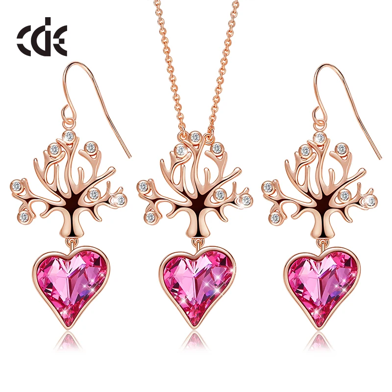 >Biżuteria i akcesoria>Drobna biżuteria>CDE kobiety naszyjnik kolczyki zestaw biżuterii ozdobiony kryształy swarovskiego kobiety serce wisiorek Stud modna biżuteria na