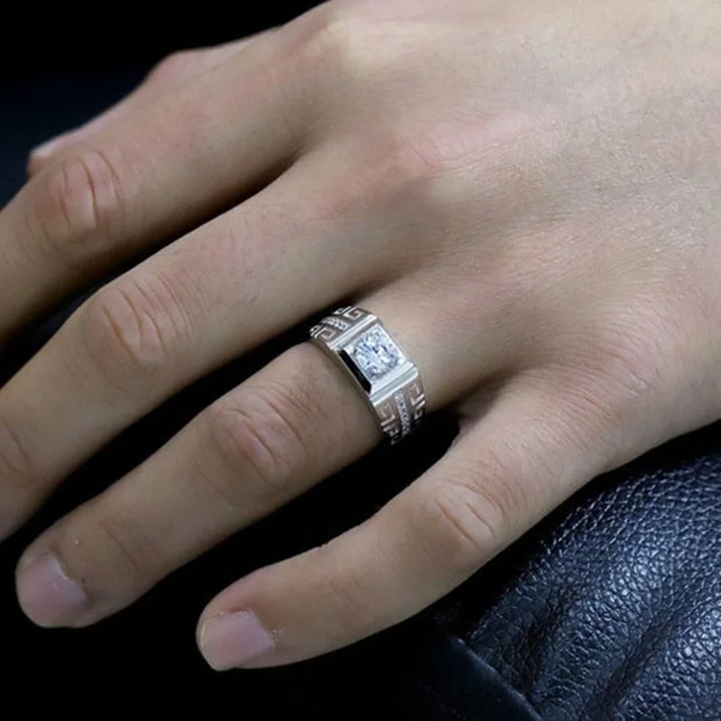 >Biżuteria i akcesoria>Drobna biżuteria>OMHXZJ hurtownia moda europejska Man Party prezent ślubny srebrno-biały kwadrat AAA cyrkon 925 srebrny pierścień RR174