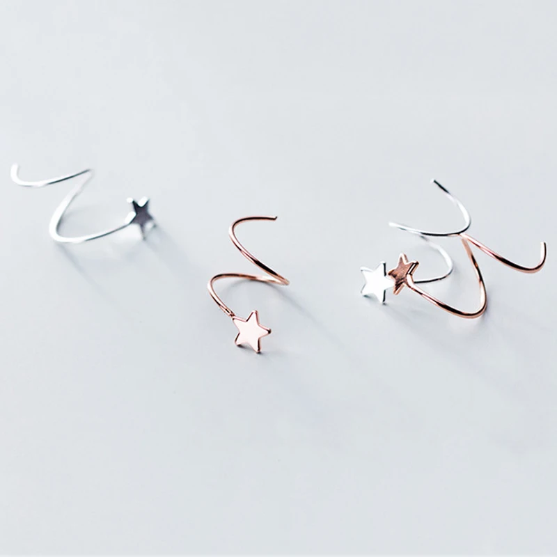 >Biżuteria i akcesoria>Drobna biżuteria>PONYKISS Trendy 100% 925 srebro śliczne Wave Star Hoop kolczyki dla kobiet Party delikatne akcesoria urodziny elegancki prezent