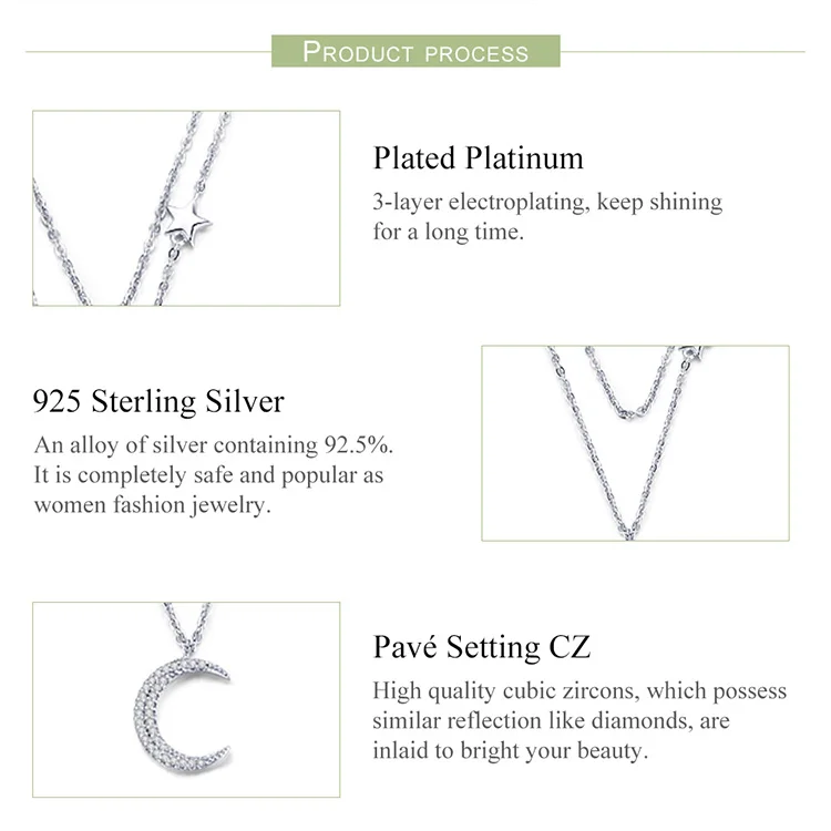 >Biżuteria i akcesoria>Drobna biżuteria>BAMOER oryginalne 925 srebro księżyc i gwiazda podwójny naszyjnik łańcuch wisiorki naszyjniki dla kobiet srebro biżuteria BSN038