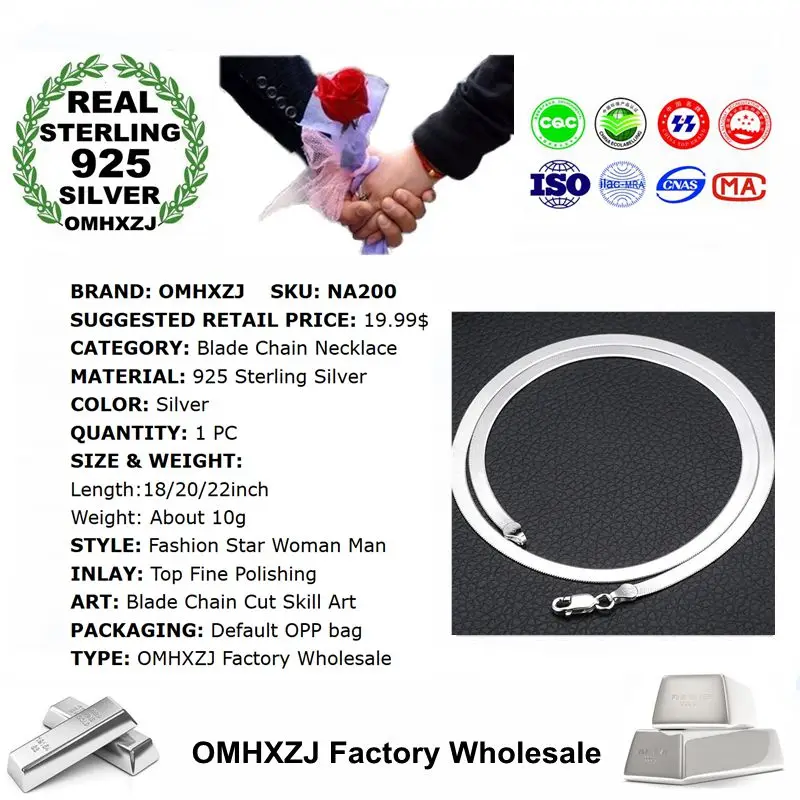 OMHXZJ hurtownia moda europejska kobieta mężczyzna wesele prezent srebrny łańcuch ostrze 925 srebro naszyjnik łańcuch NA200