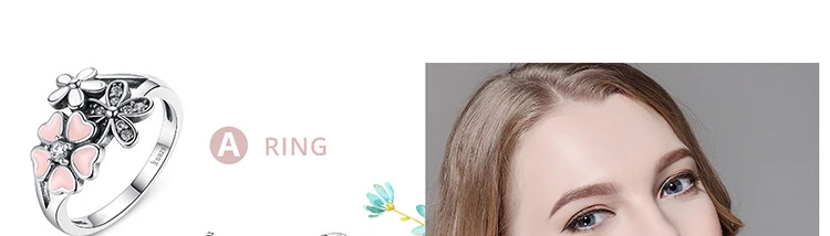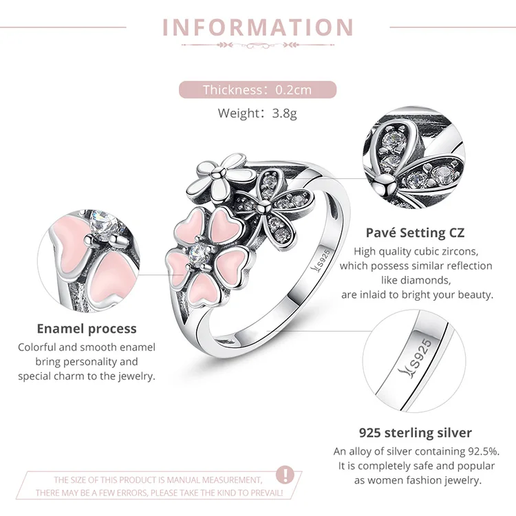 BAMOER moda 925 srebro różowy kwiat poetycki Daisy Cherry Blossom Ring Finger dla kobiet 6 7 8 9 rozmiar biżuteria SCR004