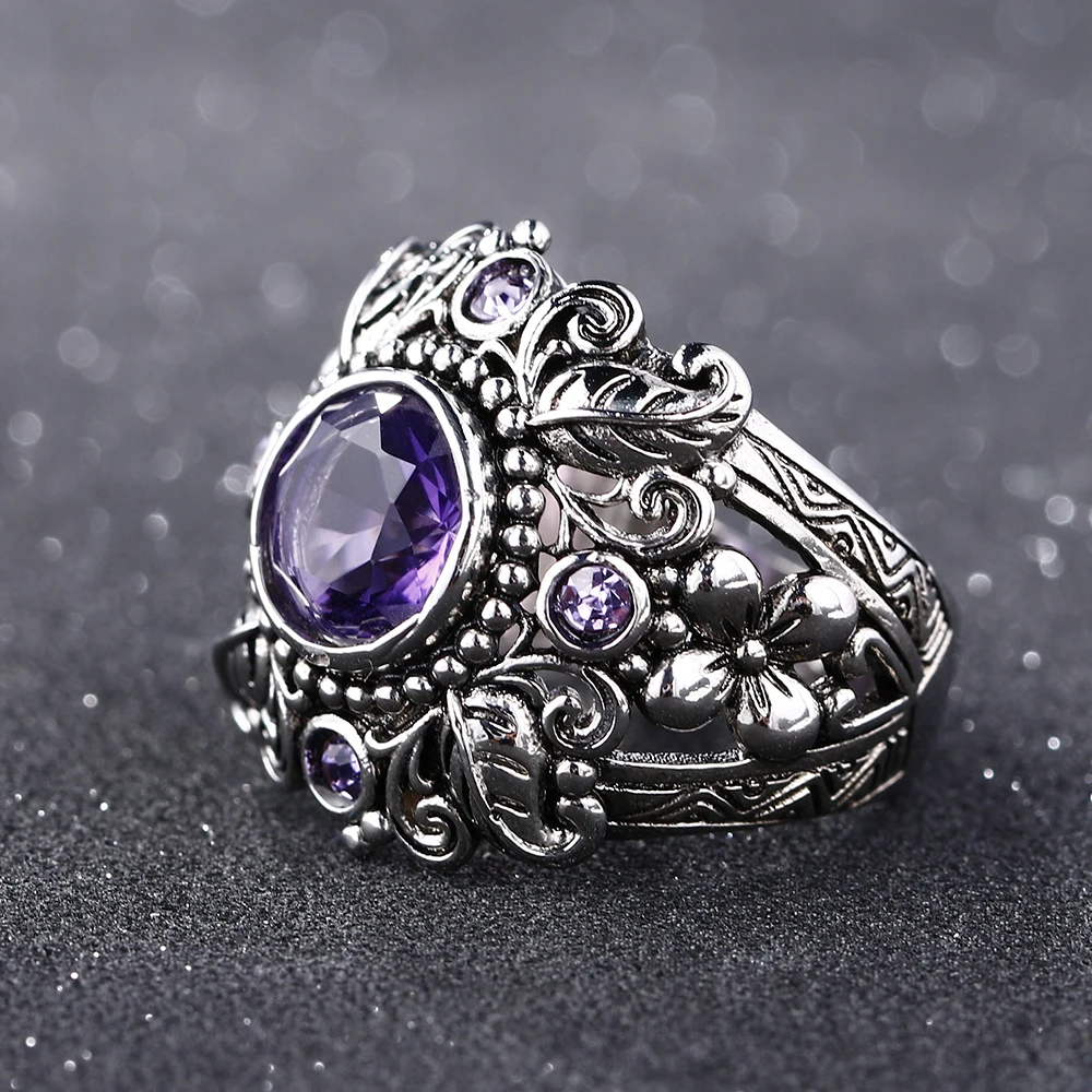 Bague Ringen 2019 Vintage 100% 925 Sterling Silver biżuteria naturalny fioletowy ametyst pierścienie z kamieniami szlachetnymi dla kobiet mężczyzn prezent na rocznicę