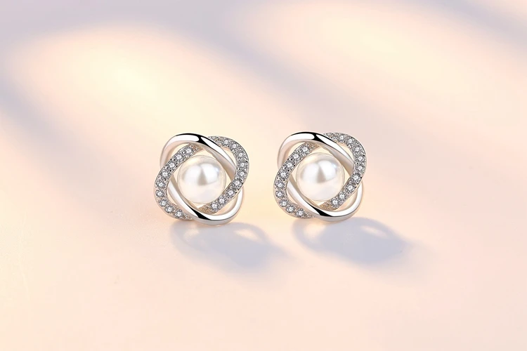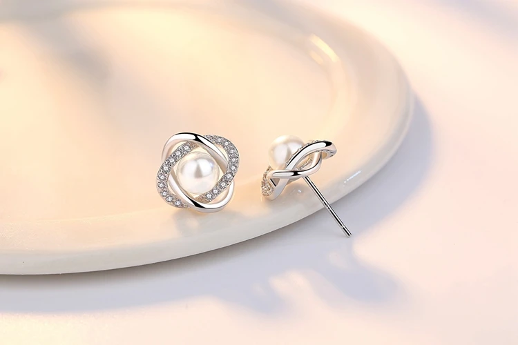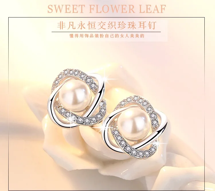 >Biżuteria i akcesoria>Drobna biżuteria>OMHXZJ hurtownia Temperament słodka, modna dla kobiety Lady prezent ślubny spleciona perła 925 kolczyki sztyfty ze srebra wysoki