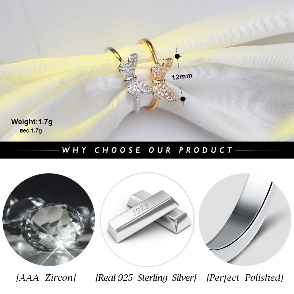 Rinntin oryginalna 925 Sterling Silver kobiety pierścień wzór motyl z AAA błyszczące cyrkon kobiet s925 pierścionki Fine Jewelry TSR59