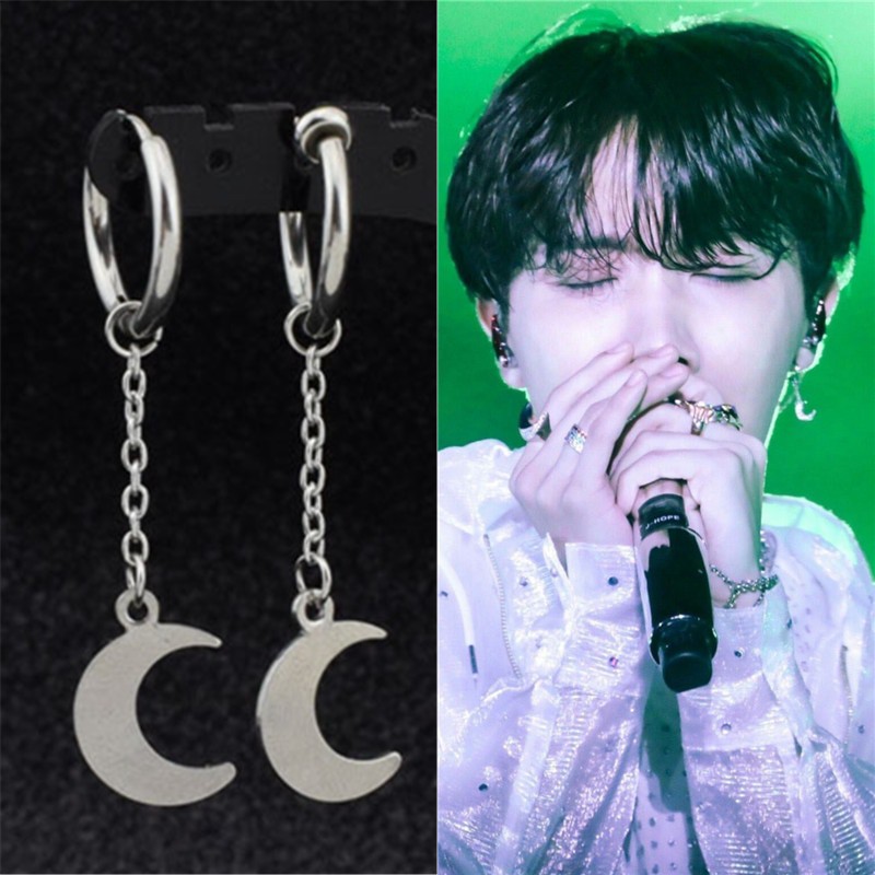 >Biżuteria i akcesoria>Kolczyki>KPOP DNA koreańskie popularne kolczyki długie męskie Bangtan Boys V Stud kolczyk dla kobiet mężczyzn akcesoria księżycowe