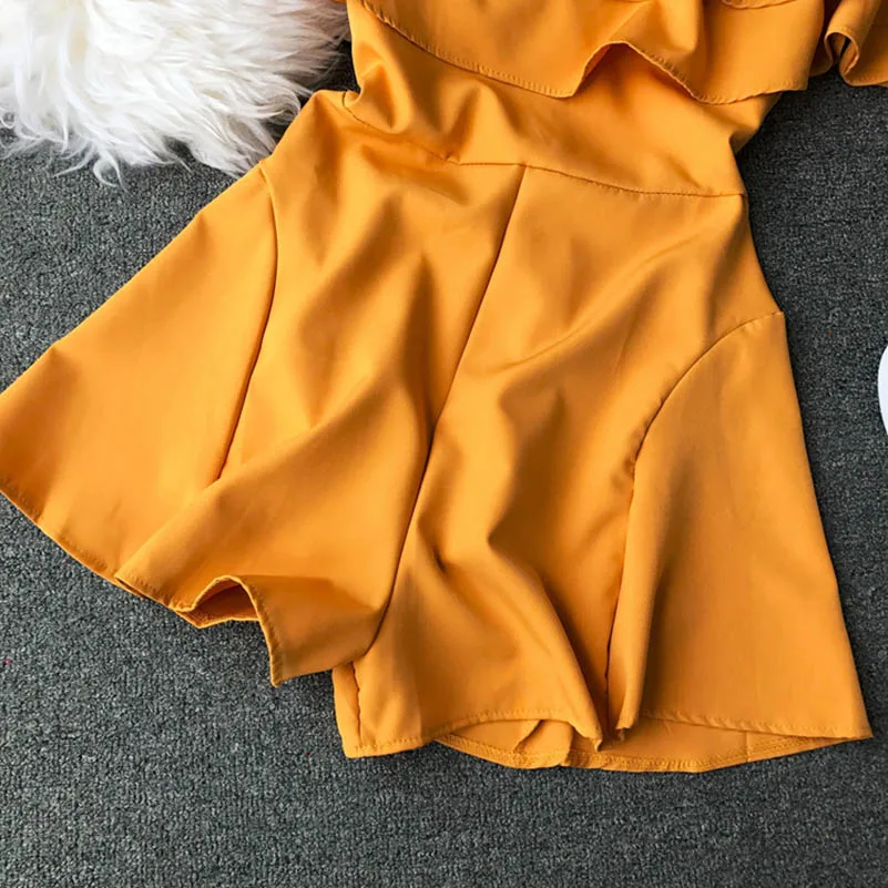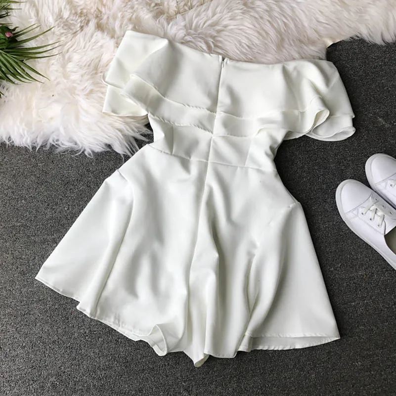 Cukierki kolor elegancki kombinezon kobiety lato 2019 najnowsze Style podwójne falbany głęboki dekolt pajacyki kombinezon damski