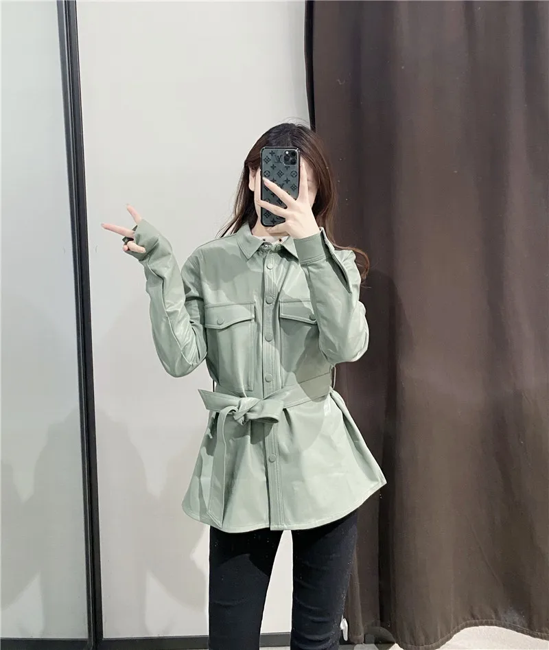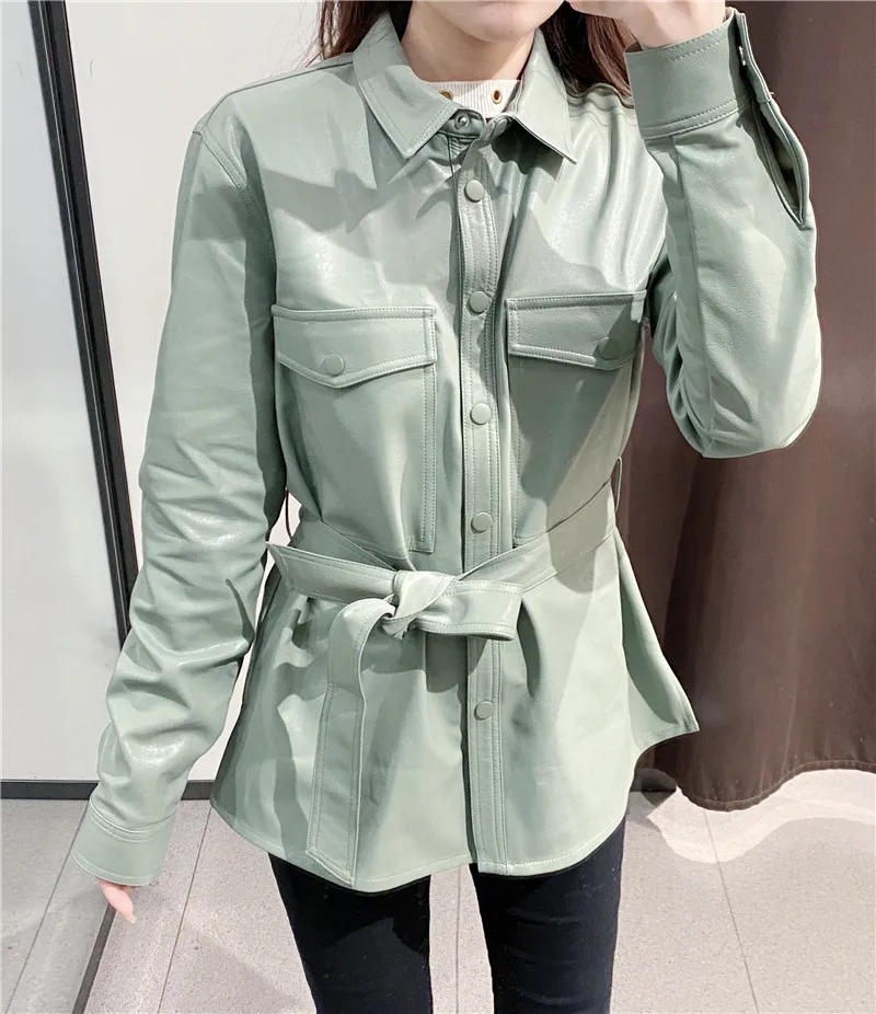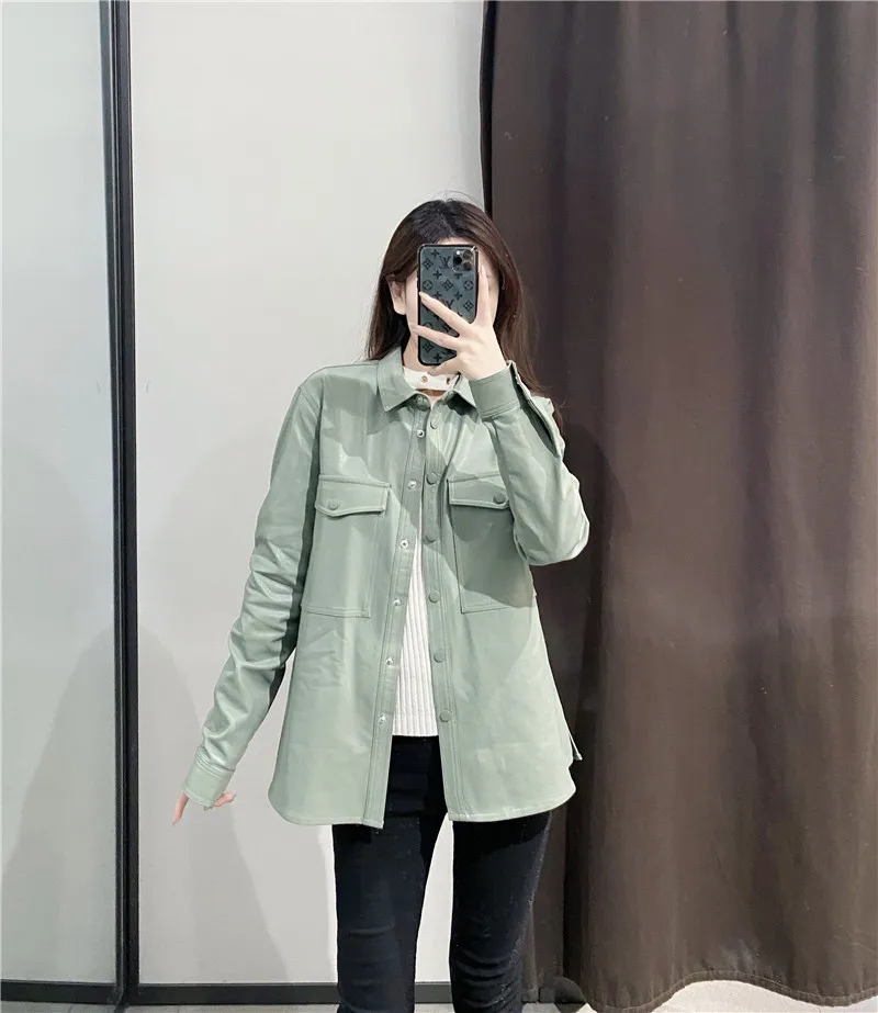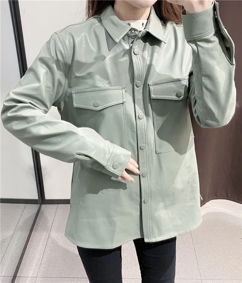 Motocykl kobiety skórzana koszula ulica osobowość metalowe pojedyncze guziki Pu koszula nowa jesienna zima Casual bluzka z długim rękawem bluzki