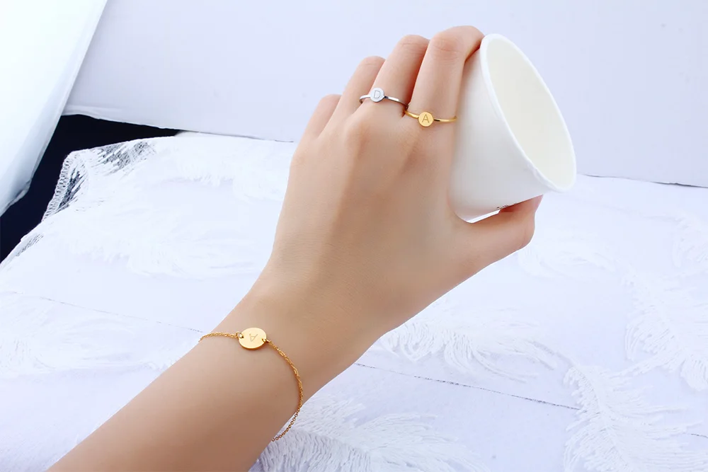 >Biżuteria i akcesoria>Pierścionki>List pierścionek obrączki dla par ze stali nierdzewnej dla kobiet palec kobieta pierścień list zestaw zaręczynowy miłość złoto s