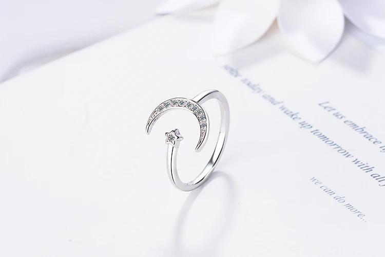 ANENJERY prosta cyrkonia Moon Star 925 srebro pierścionki dla kobiet dziewczyna regulowany rozmiar S-R467