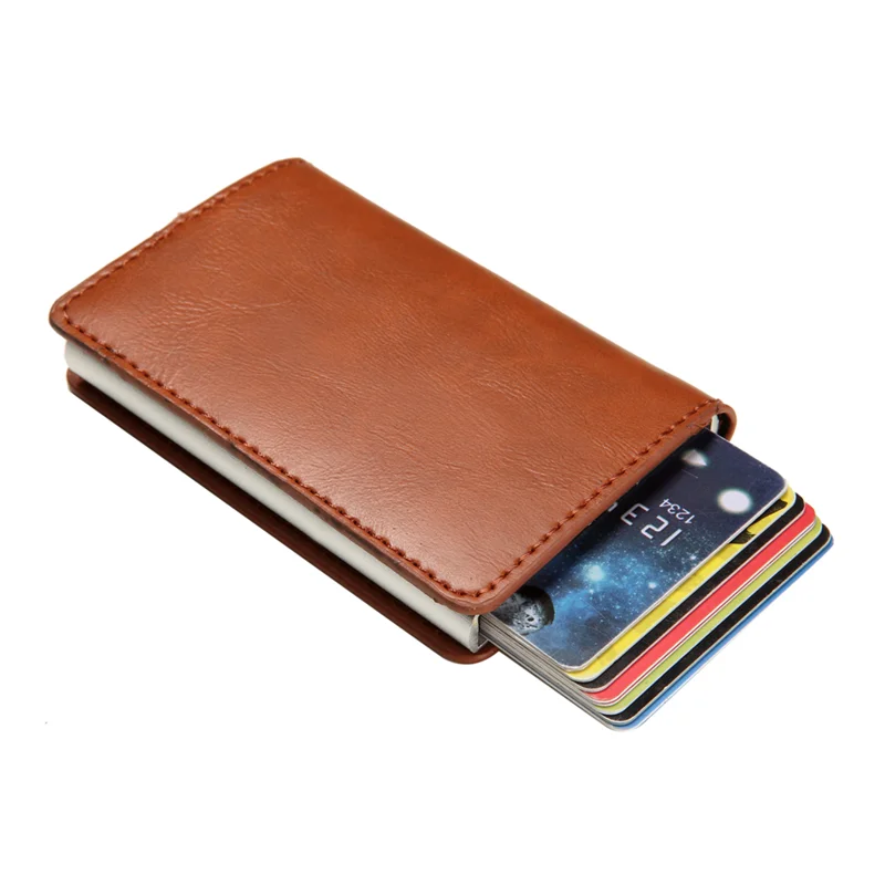 >Bagaże i torby>Portmonetki i uchwyty>Grawerowanie laserowe etui do kart kredytowych dla mężczyzn blokowanie portfel rfid skóra Unisex informacje o bezpieczeństwie al