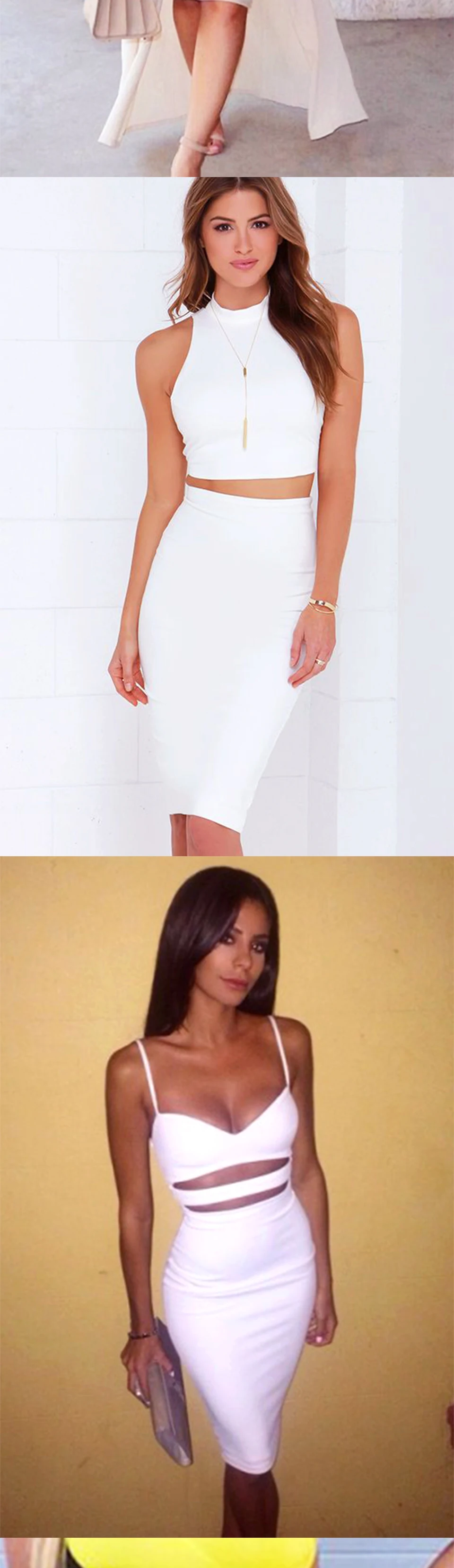 Willbenice seksowna z wiązaniami Nude fioletowa biała sukienka bandażowa typu bodycon damska spódnica do kolan ołówek
