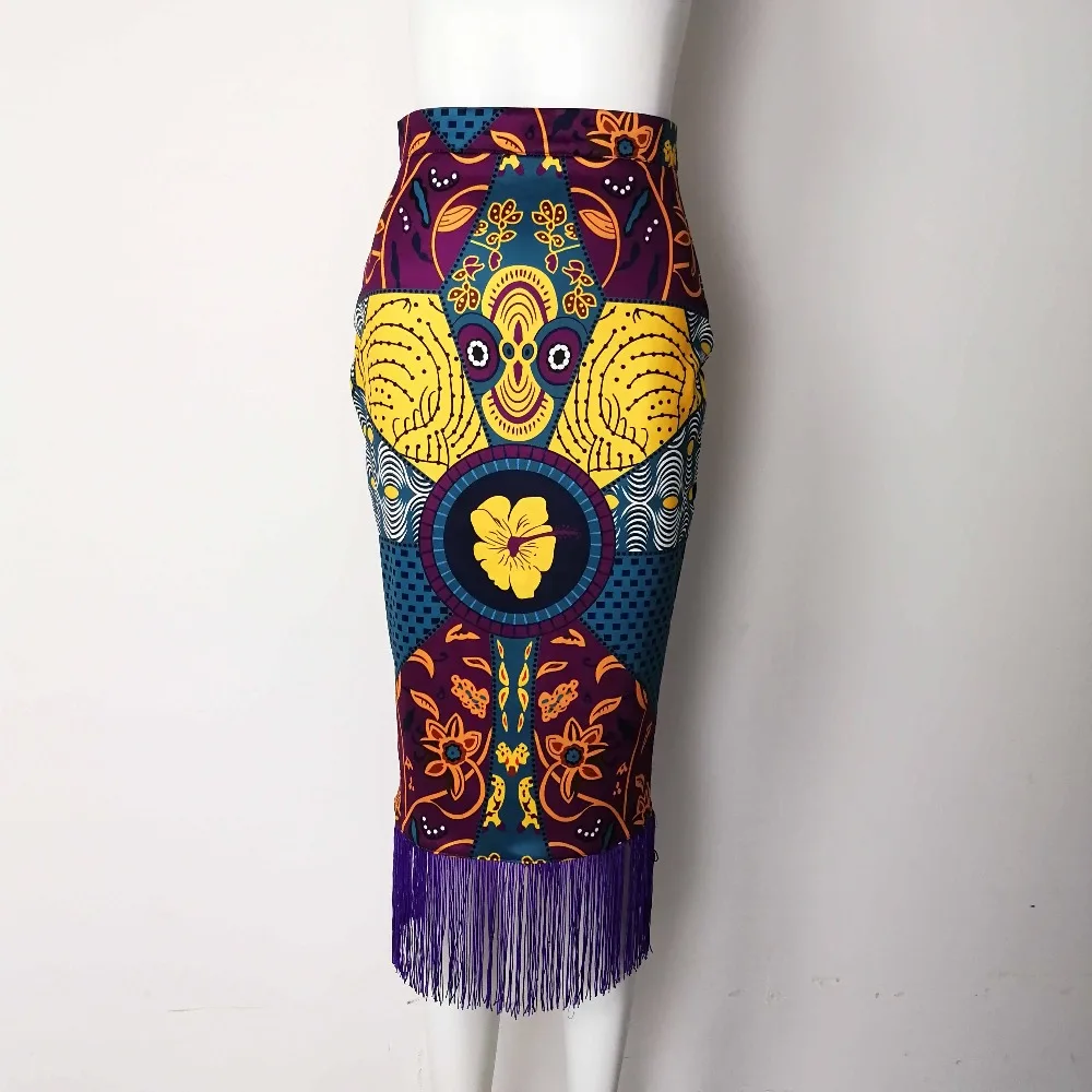 Damski letni nadruk spódnica w stylu Vintage, w kwiaty moda afrykańska wysokiej talii pomponem elegancki skromny elegancki Retro
