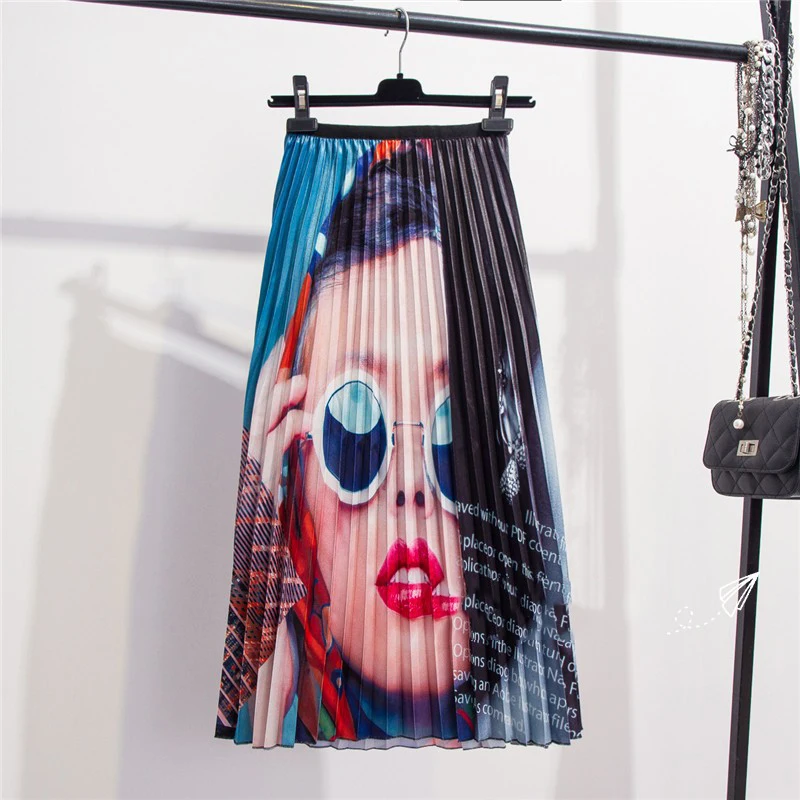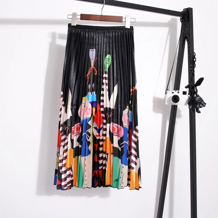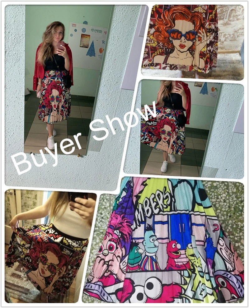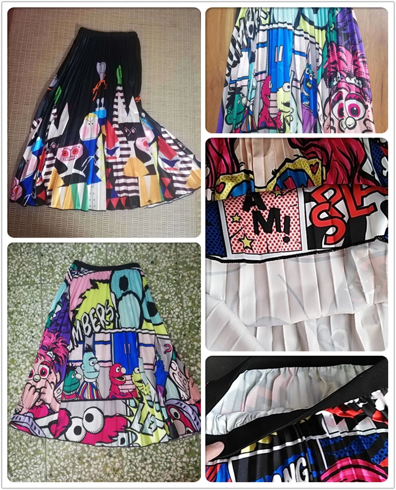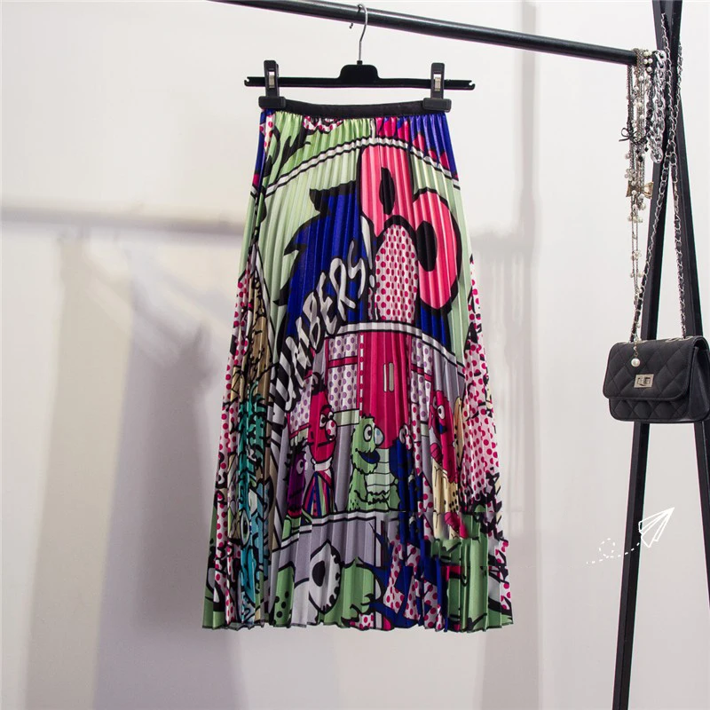 Beiyingni 28 style europa Cartoon wzór plisowana spódnica kobiety Street koreański połowy-długość do łydki elastyczna jakości sp