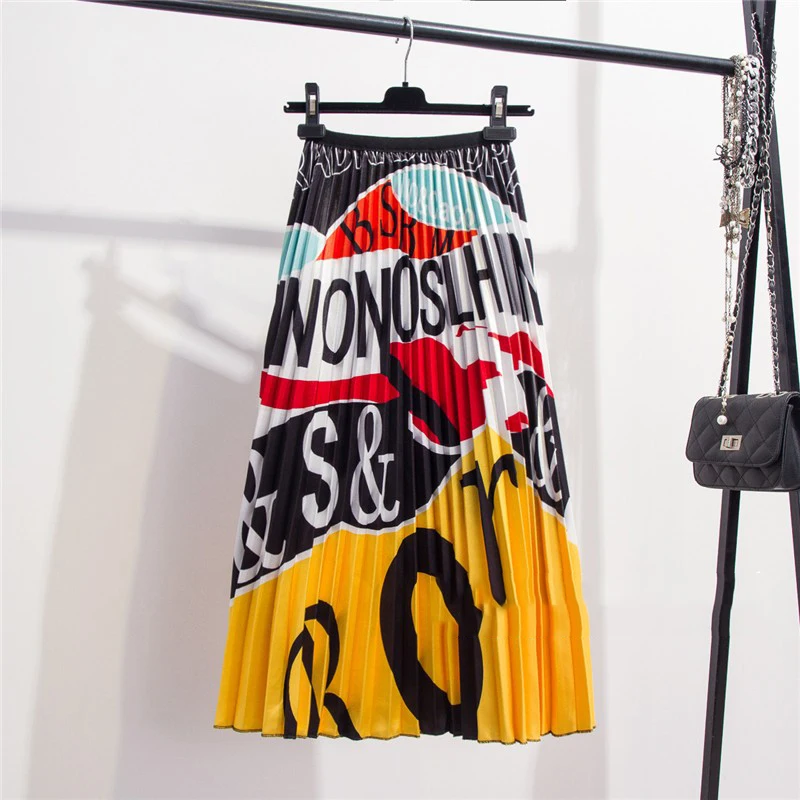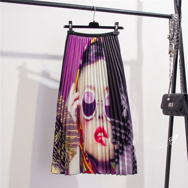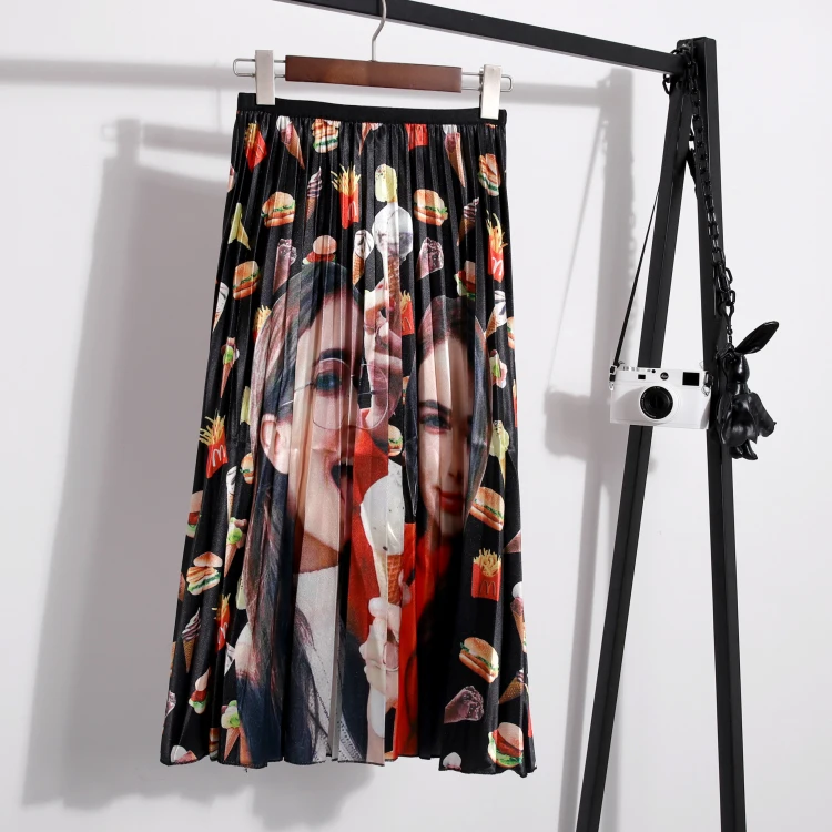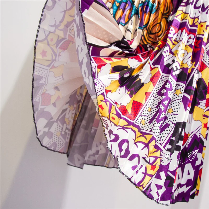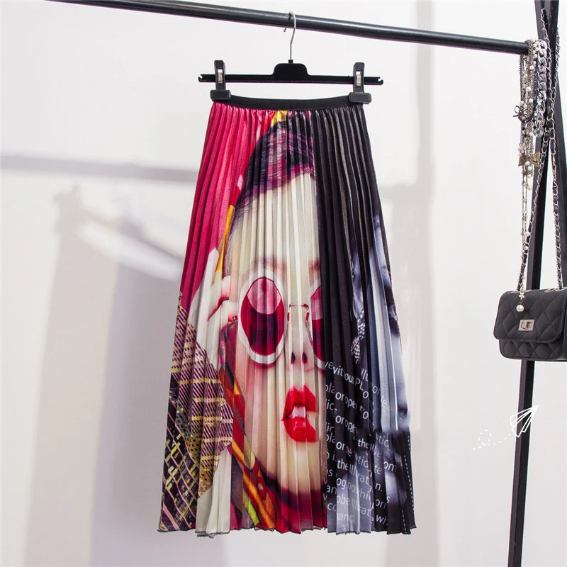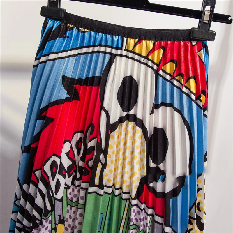 Beiyingni 28 style europa Cartoon wzór plisowana spódnica kobiety Street koreański połowy-długość do łydki elastyczna jakości sp