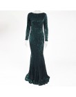 Elegancka O Neck z długim rękawem cekinowa sukienka Maxi długość podłogi rozciągliwa sukienka Bodycon Party złoty zielony bordow